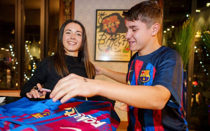 Bild 4: Bonmatí signiert das Trikot eines Jungen.