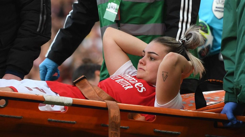 Mehr für Bestürzung als Staunen sorgte die 82. Spielminute. Eben erst reihte sich Laura Wienroither in die Verteidigungskette ein, als sie zu Boden geht. Es war ein Déjà-déjà-déjà-vu für Arsenal, als die 24-Jährige auf den Boden klopfte und mit der Trage vom Feld transportiert wurde.
