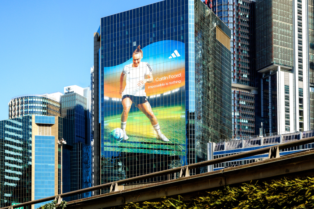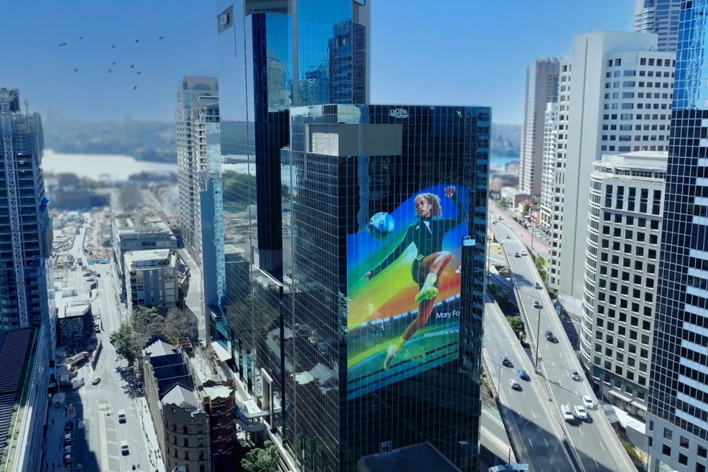 Kneif mich mal: Die 1.69 Meter grosse Caitlin Foord auf dem Wolkenkratzer ihrer Heimat. Daneben die 20-jährige Mary Fowler, über unzählige Etagen projiziert.