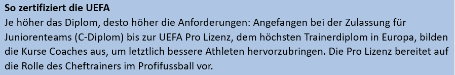 Aktiven Spieler und Spielerinnen mit dem Status «National» wird beim SFV – wie bei so vielen nationalen Verbänden – der Einstieg ins Trainergeschäft erleichtert. Unter anderem sind statt 36 Monate nur 24 Monate Mindestaktivität als hauptverantwortliche Trainerin Bedingung für die Teilnahme am Assessment Pro Lizenz. Der Zeit- und Finanzaufwand hat es für alle beide in sich: 12’000 Franken kostet und 18 Monate dauert der Aufstieg in die Coachingelite.