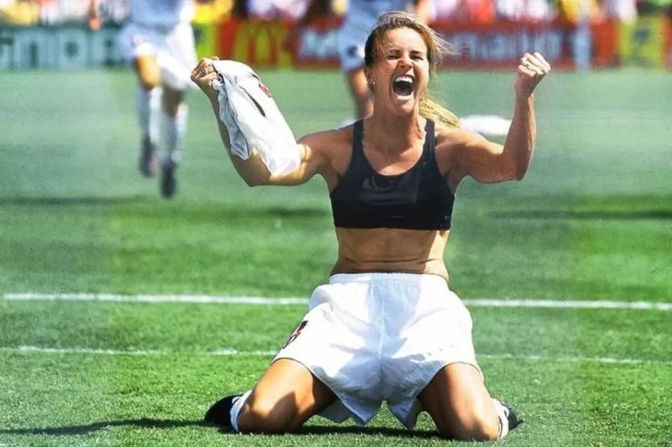 WM-Final 1999. Brandi Chastain reisst sich das Leibchen vom Oberkörper, fällt auf die Knie und jubelt über den amerikanischen WM-Sieg. Das Bild zierte am nächsten Tag die Frontseiten sämtlicher Zeitungen rund um den Globus.