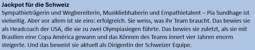 Daraufhin begann das Jahr 2024 genau gleich wie das vorherige: Der Verband stellte eine neue Trainerin vor. Aber nicht irgendeine, nein: Pia Sundhage ist ein grosser Name im Frauenfussball.